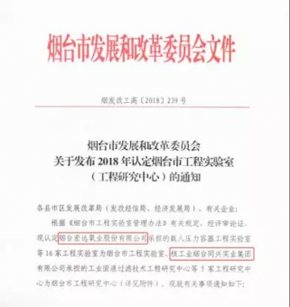 Yantai Engineering Research Center (Engineering Laboratory) is located in Tongcin Group and Hongyuan