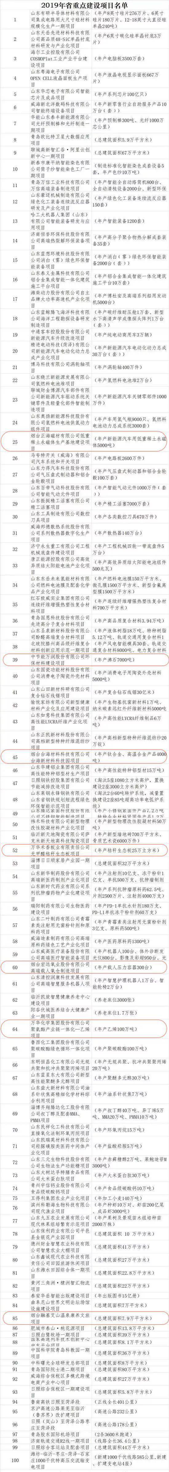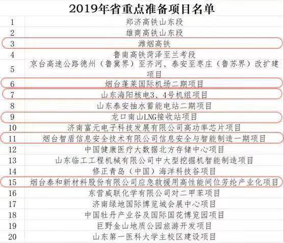 Attachment: List of key construction projects in 2019 (Yantai project has been marked)